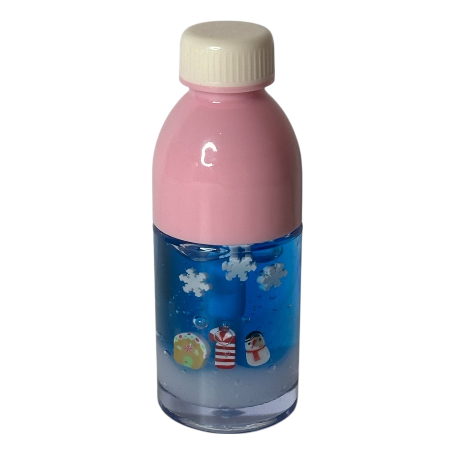 Kerst in een flesje. De bekende San 'n Shine vanillegloss met een topping van kokosnoot. Versierd met schattige kerstschijfjes.