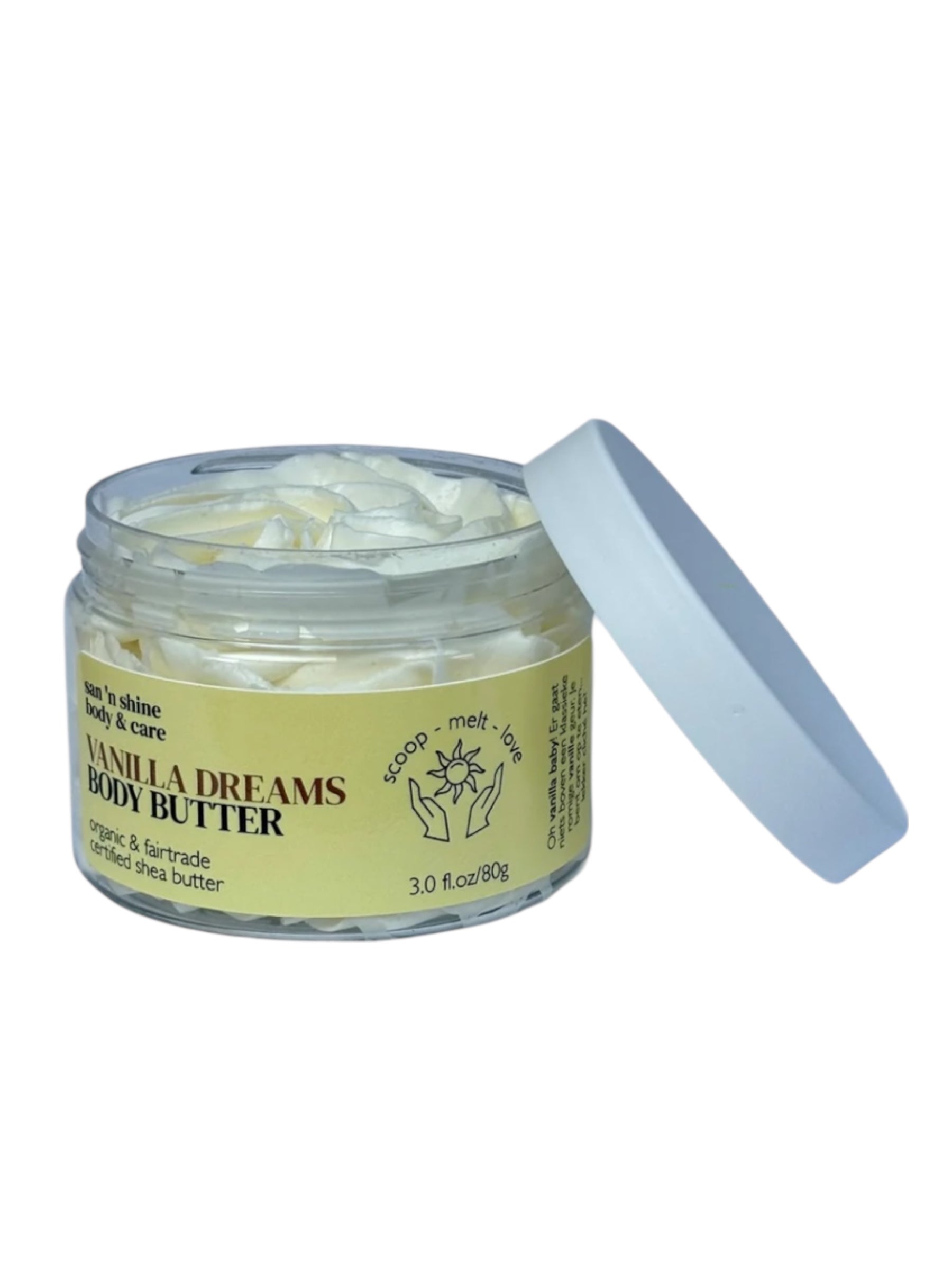 Sheaboter is rijk aan vitamines A, E en F en staat bekend om haar diep voedende en herstellende eigenschappen. Het helpt bij droge en schrale huid, verzacht irritaties en beschermt tegen invloeden van buitenaf.